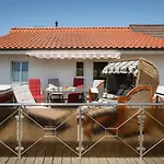 Die 56 m^2 große Ferienwohnung Oberdeck liegt 8 Minuten Fußweg von der Seebrücke entfernt und begrüßt seine Gäste mit Saunaanlagen. Promenade Grömitz befindet sich in Grömitz, in einer Entfernung von ca. 5 Autominuten vom Apartment.